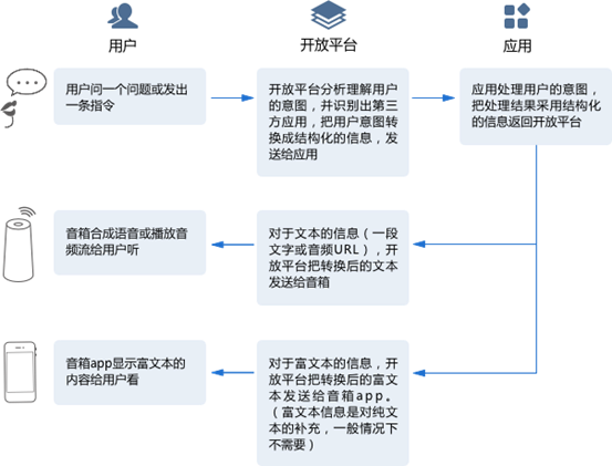 从上图中可以看到,用户与设备之间的交互,主要是采用语音方式处理和完成的。