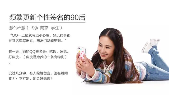 现实中的90后缺少话语权,但网络上有丰富的表达渠道,更新签名比更新微博还快,这是一种沟通方式