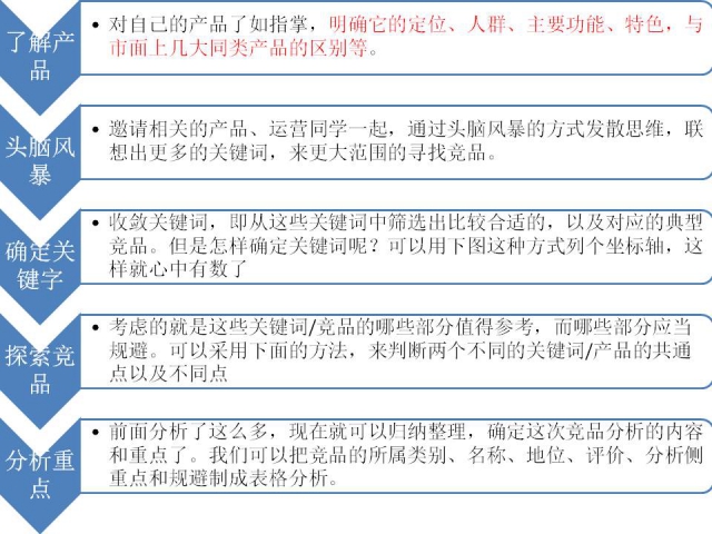 ① 选择分析目标:明确竞品分析的重点和需要解决的问题;选择合适的竞品(业务相同或者相关的产品)