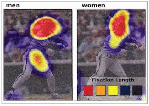 女人会关注人体脸部和躯干(左图)。男人会更多关注旁边的杂物(右图)。