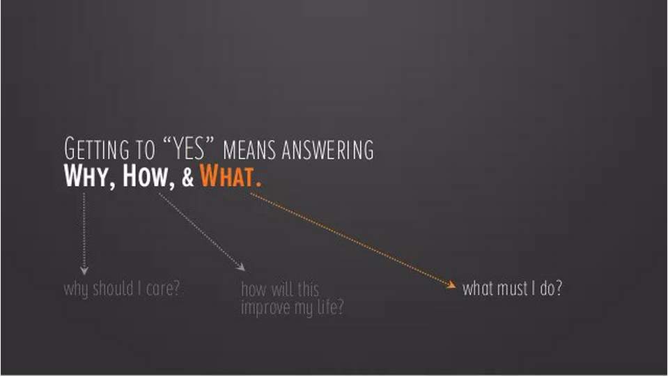 让你的观众Say YES,你需要回答的信息包括:为什么,怎么做,做什么。