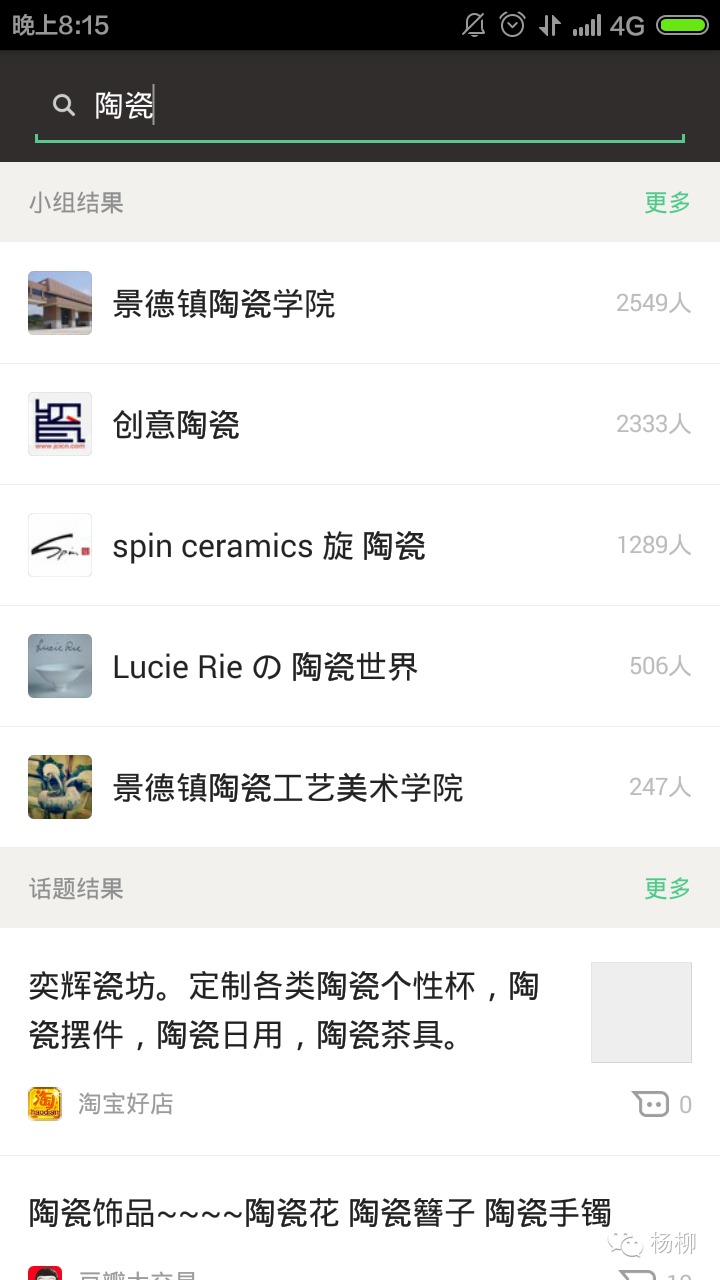 这里同样提供了话题和小组的搜索。点击右边的“更多”可以看到更多结果。
