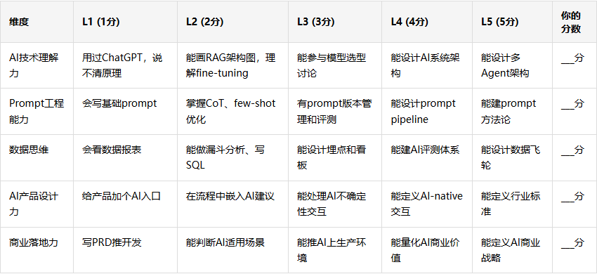 另外,这个能力模型我会持续迭代。如果你觉得哪个维度的描述不准、哪个等级的标准需要调整,也欢迎在评论区告诉我。好的工具是用出来的,不是一个人关起门来想出来的。