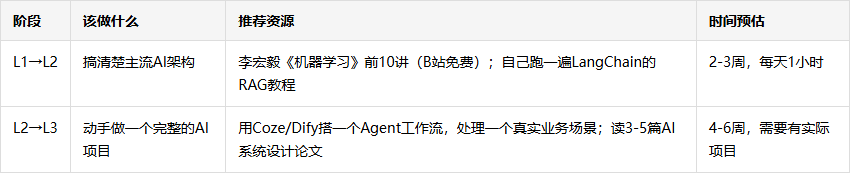 - 选一个维度,死磕到L3。 不要五个维度平均发力,选你最感兴趣或工作中最常用的那个,集中三个月打穿它。