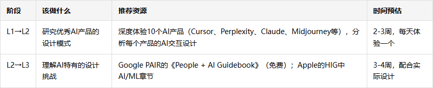阶段目标: 能处理AI不确定性的交互设计,能设计AI和用户的协作流程。