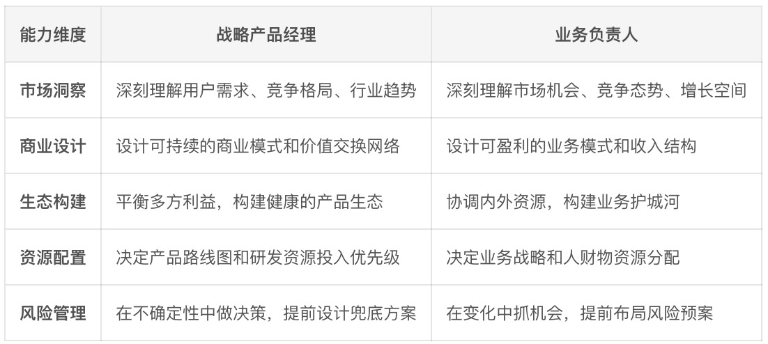 战略型产品经理与业务负责人的边界正在快速模糊。事实上,在今天的互联网公司,一个优秀的战略型产品经理,实际上已经在承担业务负责人的大部分工作。