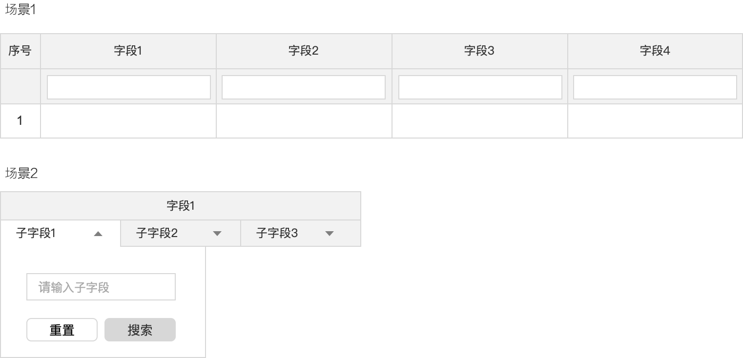 列表表头搜索,最常见的一种就是每个表头字段下面一个筛选框;另一种比较特殊的表头搜索主要是根据数据根据查询条件,列表表头字段改变,改变后的列表字段查询,