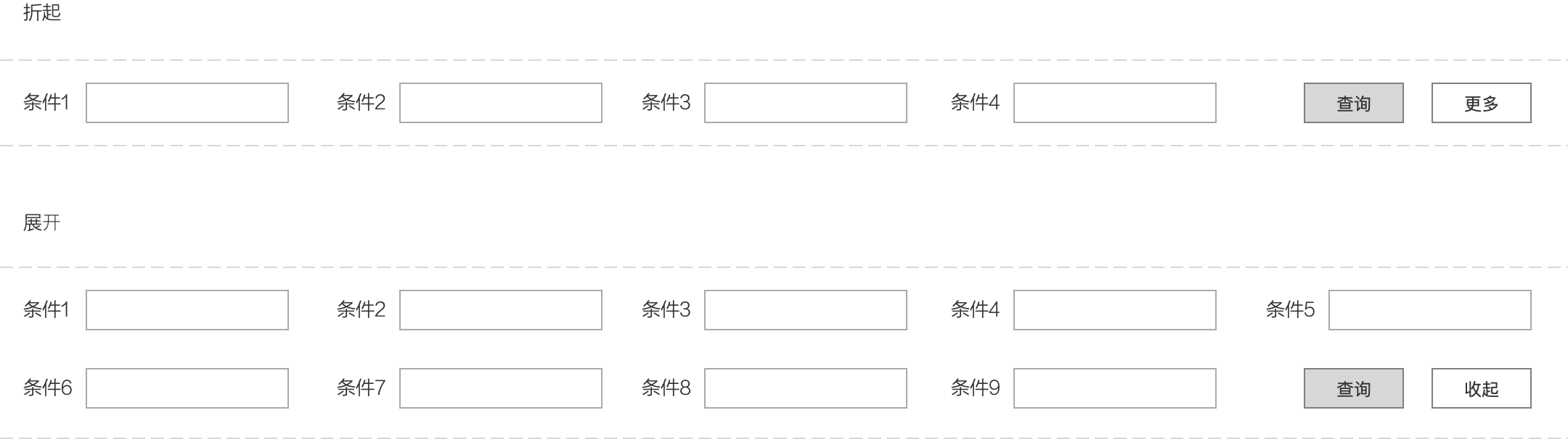 一种数据量大,以查询浏览为主的列表,尽量把所有的搜索条件都展开,一种是以浏览管理为主的列表,尽量把搜索条件折起来,展示最主要的查询条件