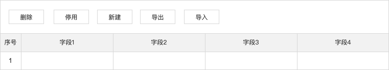 批量操作也叫一对多的操作,就是对列表里面的数据可以多个批量操作,比如删除、停用等。这类操作都会放在列表上方区域。新建、导入、导出。