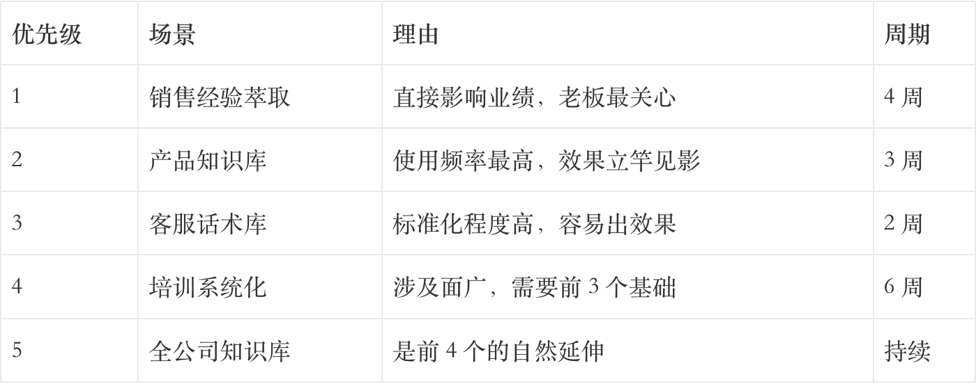 不要一上来就”全公司知识大整理”。