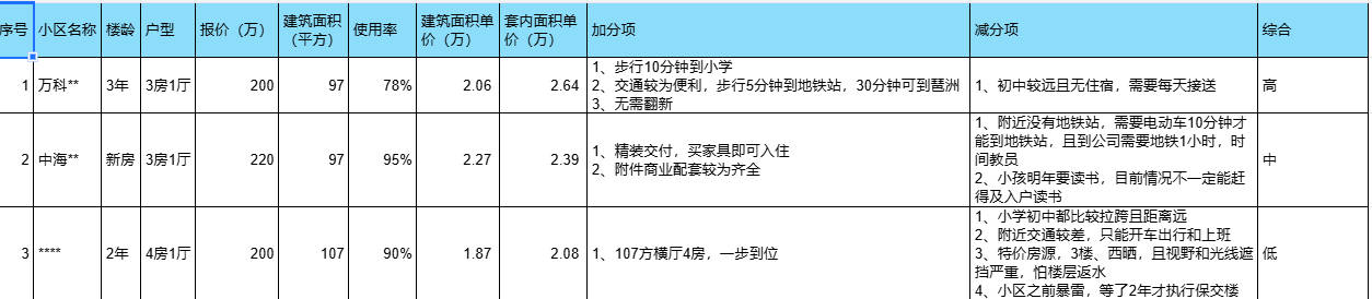 置业范围已经初步筛选后,那么进入最关键的,整理候选的产品清单,