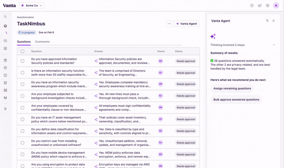 其AI Agent并非孤立功能,而是深度整合于Vanta的信任管理平台: