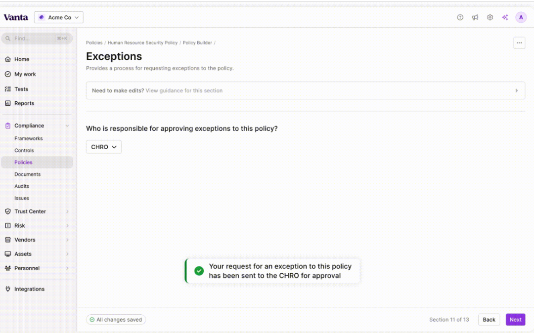 Vanta将原本繁杂的策略调整流程,变成自然语言指令: