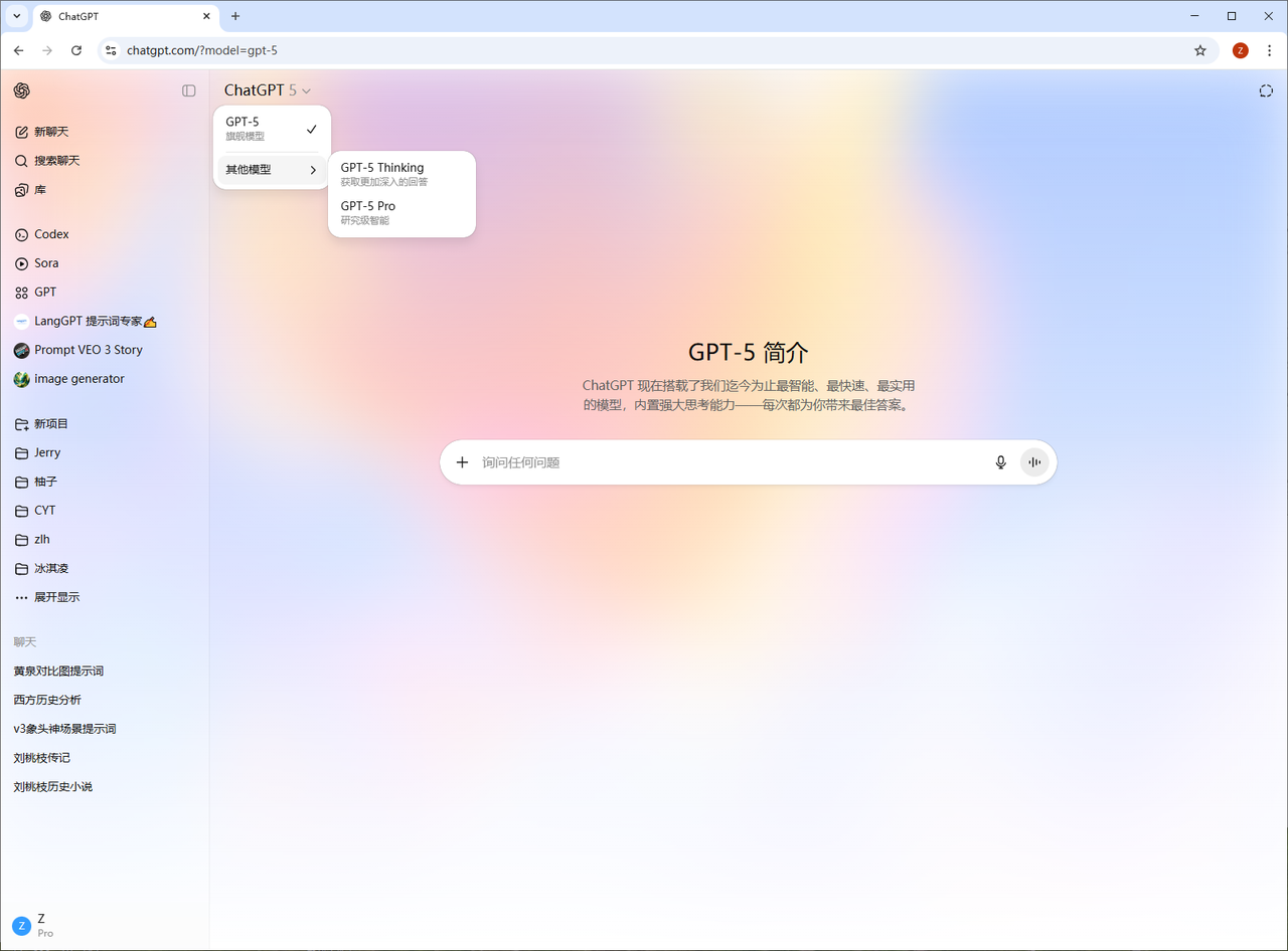 - 默认模型升级:GPT-5直接取代了GPT-4系列,成为用户的默认选项。