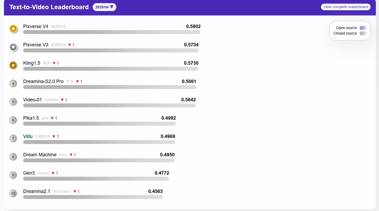 以今年4月和7月的AGI-Eval(由多所国内顶尖高校和研究机构联合发布)榜单为例,仅仅三个月时间,前十排名便发生大幅洗牌,能维持榜上位置的仅剩Pika 1.5、MiniMax的 Video-01、爱诗科技的PixVerse V4。而其他原本上榜的模型,或被自家迭代版本替代,或已被后来者赶超。