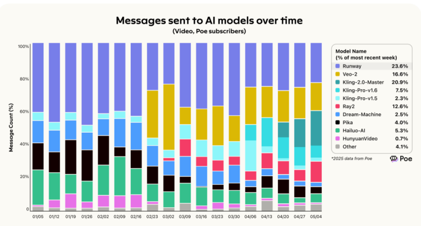图片来源:Poe,《报告:2025年春季人工智能模型使用趋势》