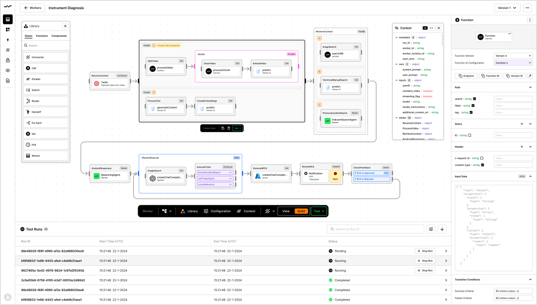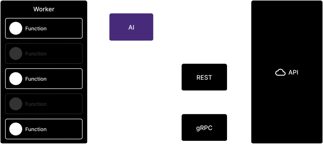 Worker是平台的基本单元,它是一个工作流或agent,或两者的组合,代表一个完整的流程,定义为一系列相互连接的状态。这些状态不一定需要在运行时定义,也不受线性数据流的限制。这种设计的灵活性允许企业创建真正反映其业务逻辑复杂性的工作流,而不是被迫适应预定义的模式。State代表流程中的单个步骤,而Function是通过API调用执行的特定操作,无论是REST、gRPC还是GraphQL。这种协议无关的设计意味着企业可以在平台中混合和匹配不同的技术栈,而不需要进行昂贵的标准化工作。