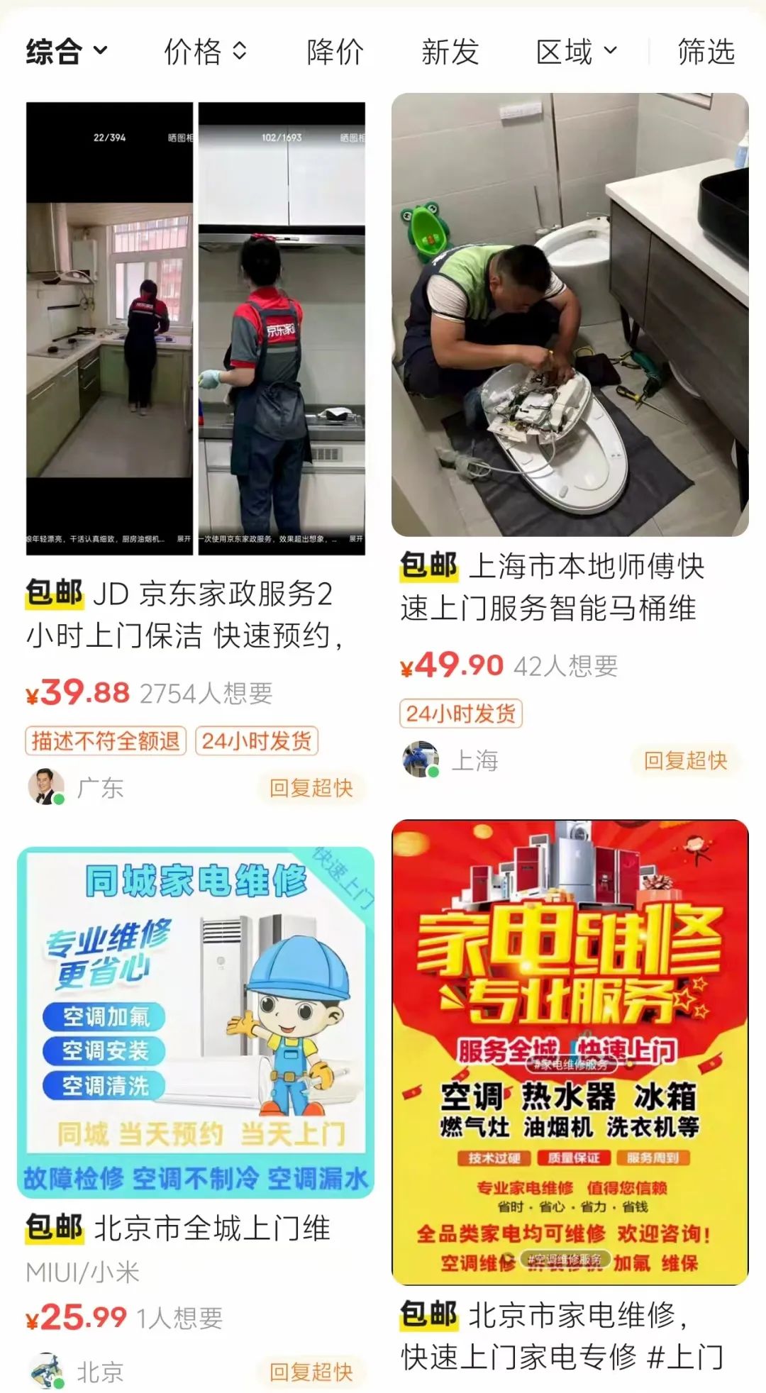 过去几年,我家一直使用天鹅到家的周期保洁订单,时薪50元,每周支付250块钱。但前两天朋友跟我安利,她一直在闲鱼找家政,时薪25元,上门来服务的师傅,也都是专业家政平台的。虽然每次来的人都不固定,但在五折的价格面前,一切都可以忍受。