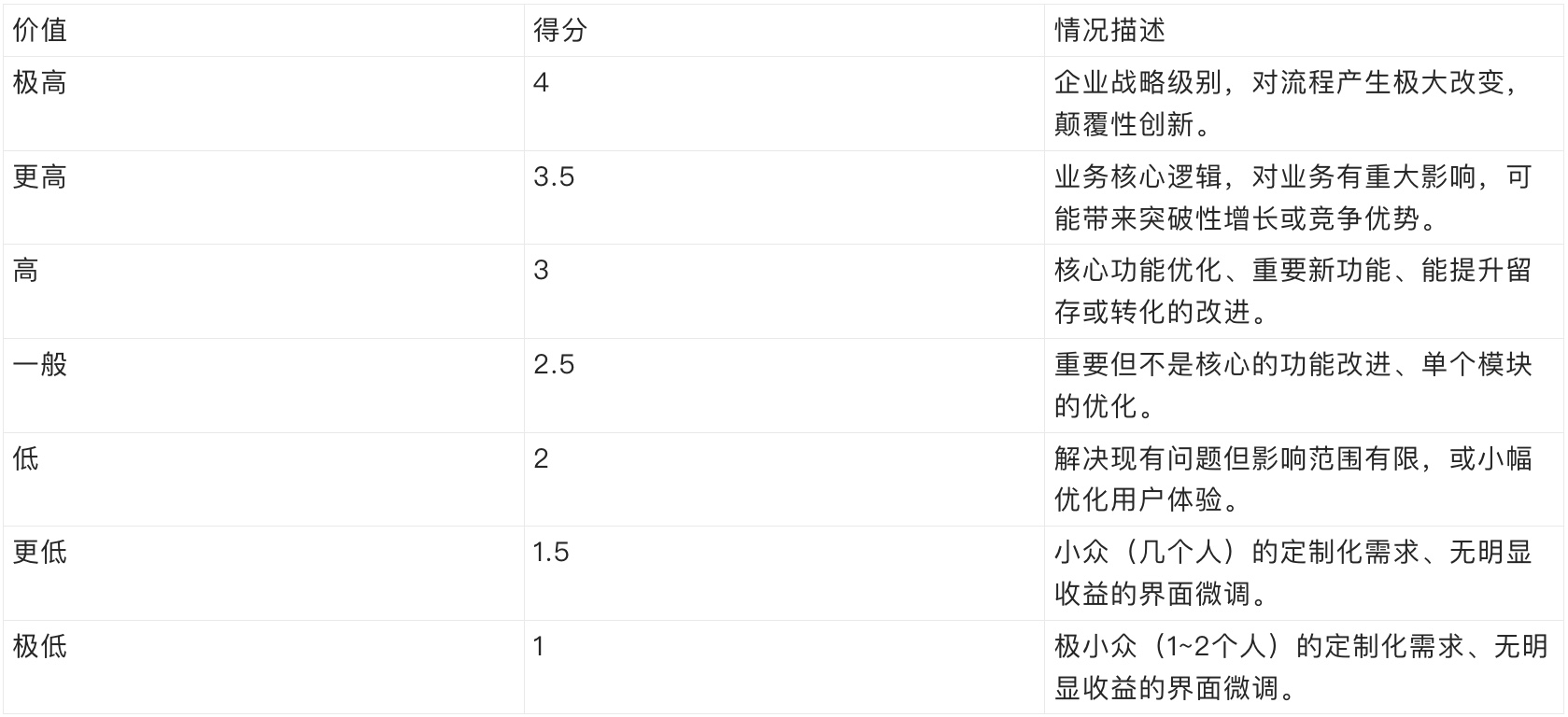 比较理想的情况下,业务把每个需求的价值都写得一清二楚,但是操作起来比较繁琐,需要等待一个不错的时机来试行这个事情。
