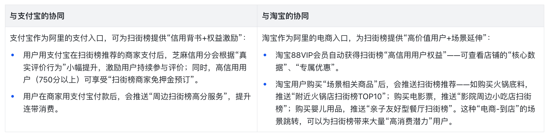 扫街榜与支付宝和淘宝的协同,核心是“锁定高价值用户”,通过“权益绑定”提升用户粘性与转化: