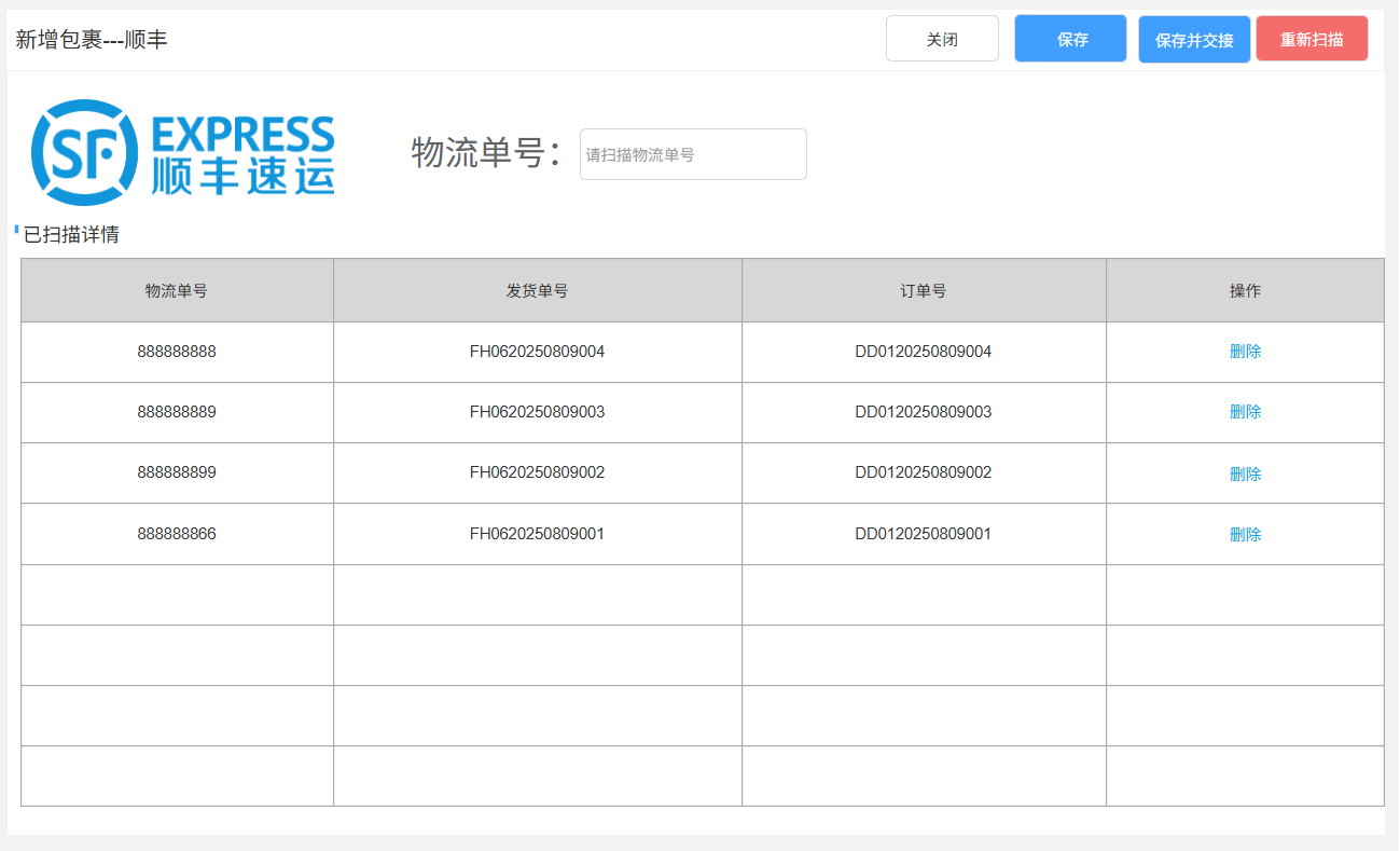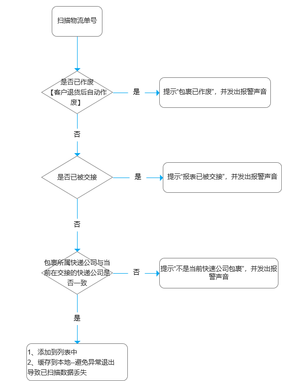 2、扫描物流单号,系统逻辑如下。