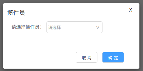 交接出库:弹出选择揽件员页面。可选择的揽件员为当前快递公司后台配置的揽件员。