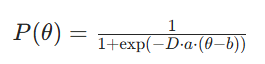 - 定义a为题目区分度参数(a>0,值越大,题目对不同能力学生的区分能力越强,例如一道区分度高的题,能力强的学生几乎必对,能力弱的学生几乎必错)。