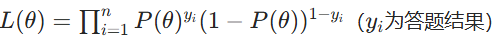 答题正确y_i=1,答题错误y_i=0; - 对θ取对数并求导,找到使对数似然最大的θ值。