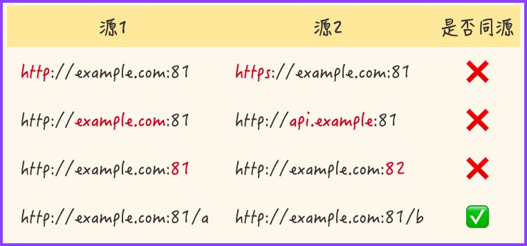 源(origin)= 域名 + 协议 + 端口,同源策略是浏览器的一个安全功能,要求协议、域名、端口都相同的情况下,网页才能进行相互访问和交互,当请求的资源与当前页面的源不同时就会触发跨域。举例说明: