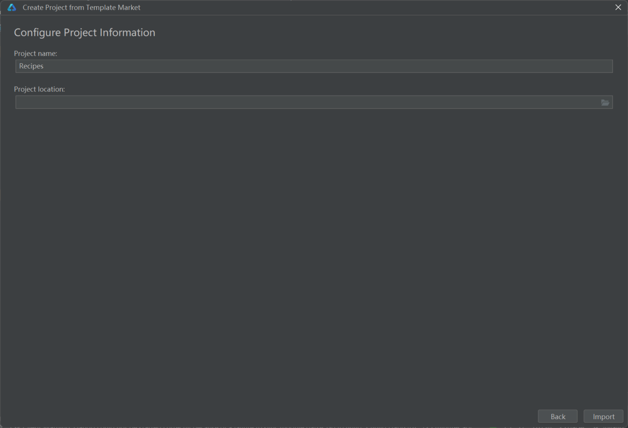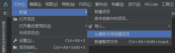 点击顶部菜单栏中的“File(文件)”> “New…(新建)”> “Create Project from Template Market(从模板市场创建项目)”,进入模板市场界面;