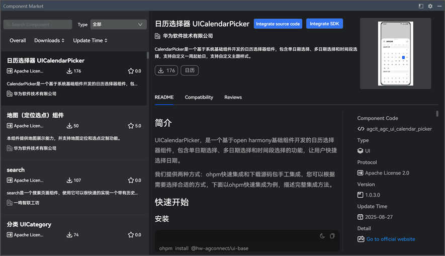★ 一键直达生态市场组件&模板市场 , 快速应用鸿蒙生态市场插件集成组件&模板 ★