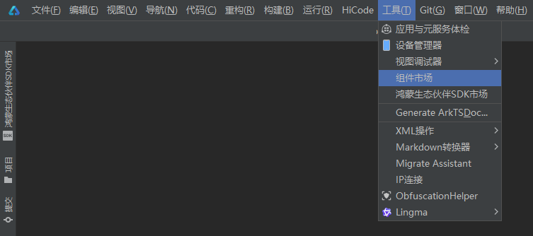 点击顶部菜单栏中的“Tools(工具)” > “Component Market(组件市场)”,进入组件市场界面。
