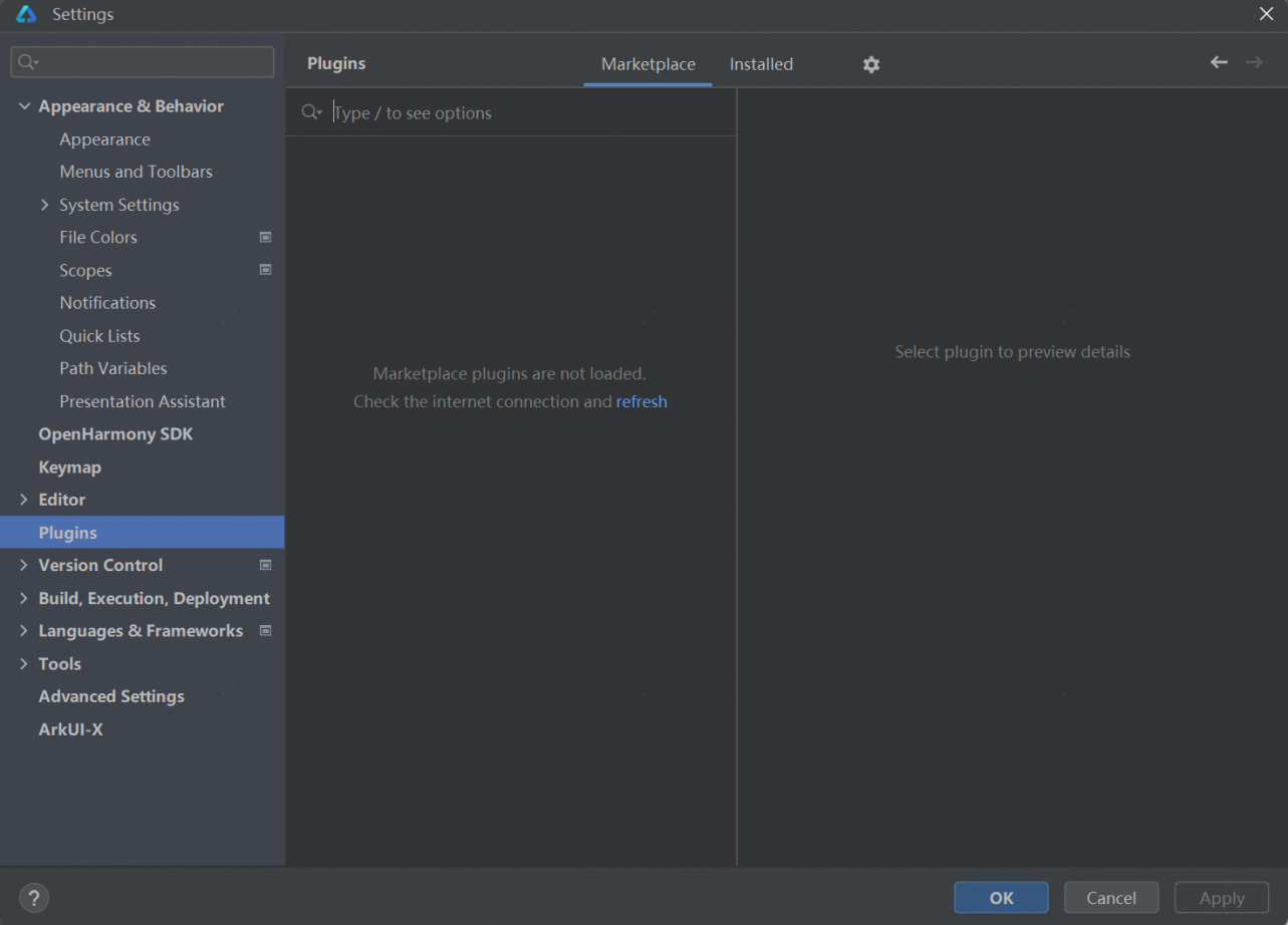 在设置窗口中,选择“Plugins”(插件)选项卡,进入插件市场。