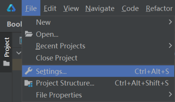 启动 IDE,点击顶部菜单栏中的“File”(文件) > “Settings”(设置) > “Plugins”(插件)