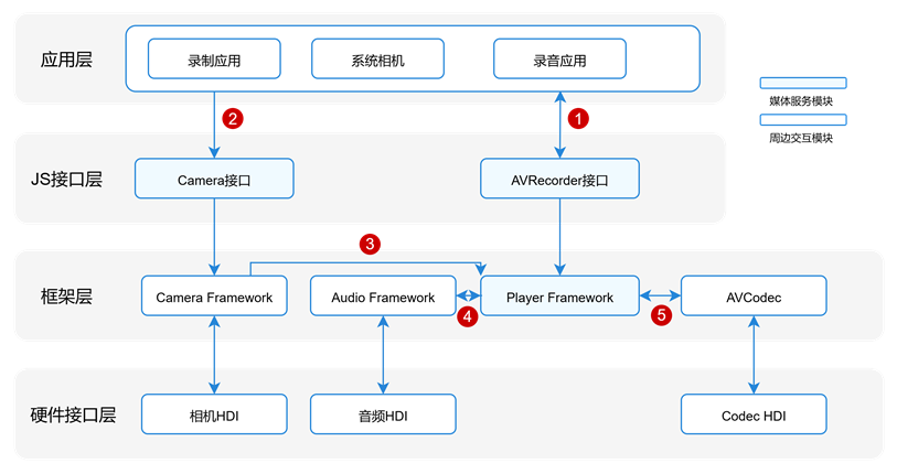 - 录制服务将音频参数设置给音频服务,并从音频服务获取到音频数据。