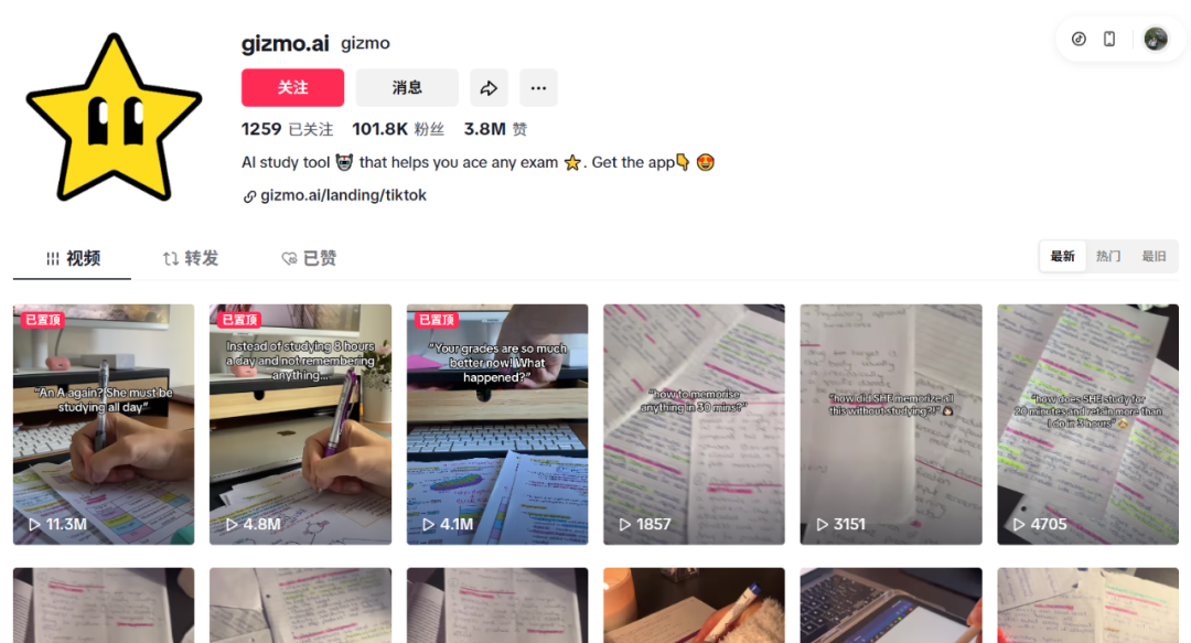 从其官方发布的短视频内容来看,“学校”“学生”“学习妙招”“学习技巧”等关键词频繁出现,可以看出,Gizmo在社媒平台上的宣传重点主要面向学生群体。