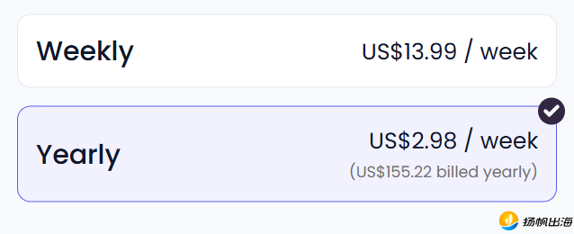 订阅分为两档:周订阅价格为13.99美元,年订阅价格为155.22美元(折合每周约2.98美元)。
