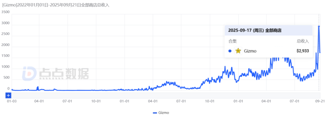 Gizmo上线以来应用端收入表现(来源:点点数据)