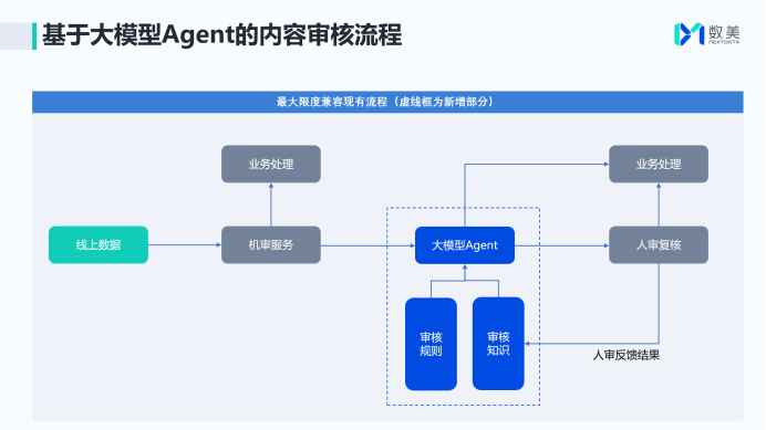 例如,Agent插在“机审服务”与“人审复核”之间。是机审服务的补充,但不影响原有人审复核的工作流程。
