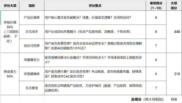 我个人给该产品的打分很高。特别是在体验价值方面,因为场景可控(失误可补救)、交互成本低(不改变原有流程),所以三个分数分别得到8、8、7。