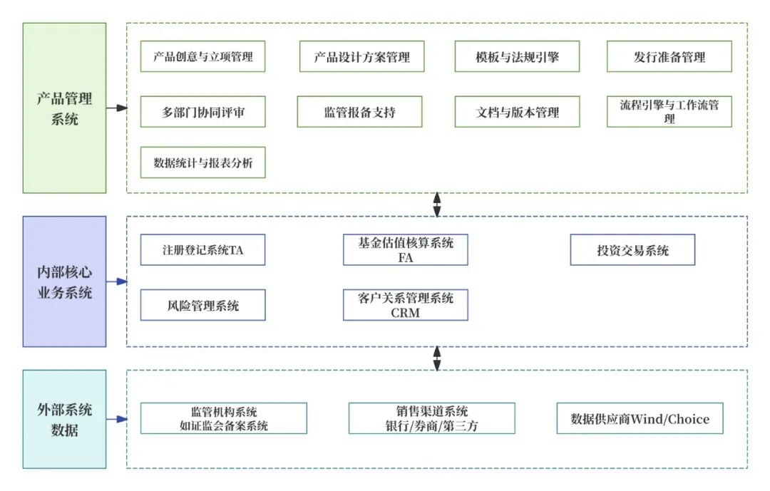 概念:为基金公司在新产品创意、设计、审批、备案、发行准备及后续管理等环节提供支持的信息化系统。它不是一个孤立的系统,而是连接前、中、后台各部门的协同工作枢纽和产品数据中枢。