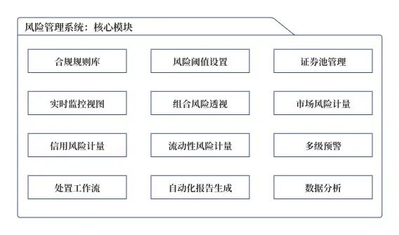 概念:利用数据、模型和规则,对基金投资运作全过程中面临的市场风险、信用风险、流动性风险等进行识别、计量、监控和报告的IT平台。它已从事后统计向事中干预和事前预警演进。