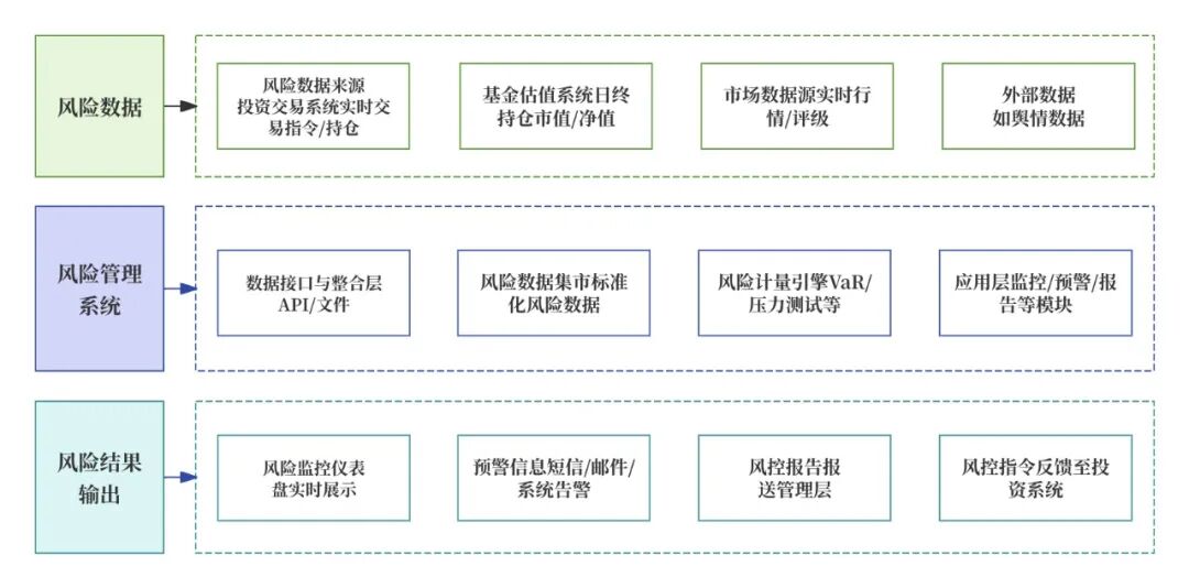 对接系统:风险管理系统、投资交易系统、基金估值系统、合规管理系统、数据分析报表。