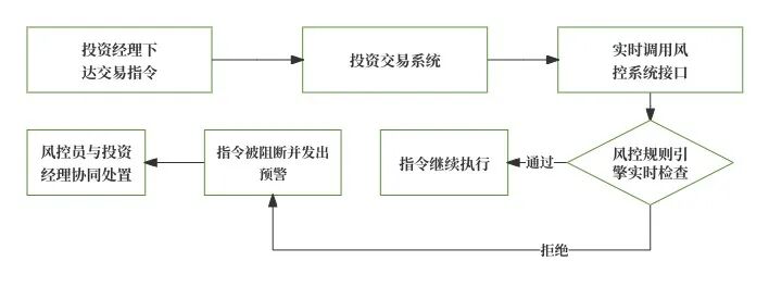 小结:最典型的基金实时事中风控流程(核心闭环)为例,展示其数据流和审核流,如下图所示: