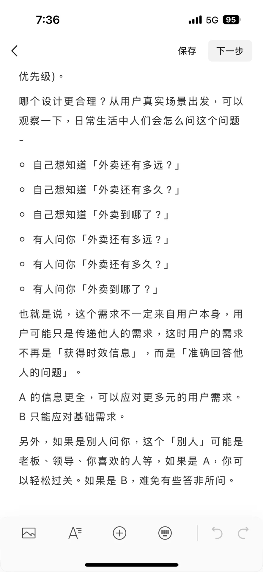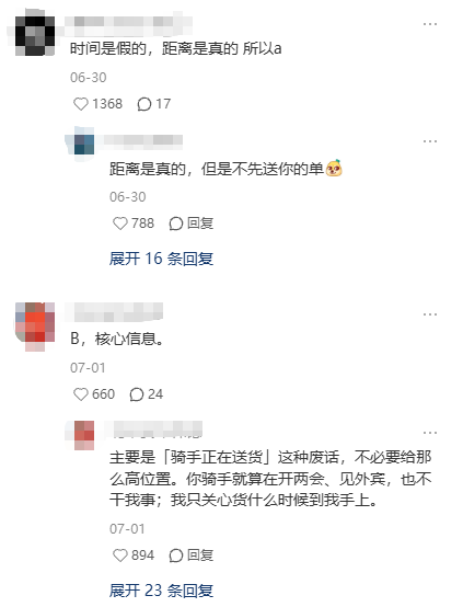 比如,有的人选A,因为他认为距离是真的,时间是假的(预估的),这时候给我距离很重要,我自己也可以有个预估,心里有数。