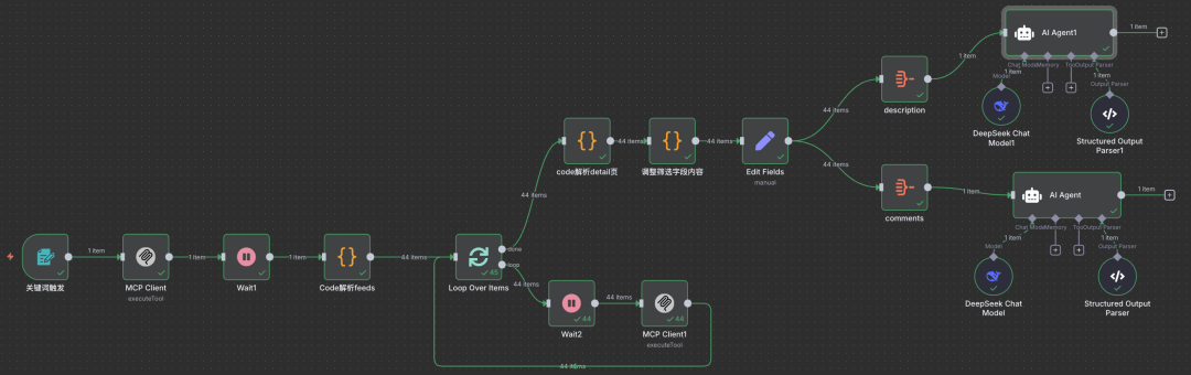 - 放个循环用小红书mcp把拼接好的笔记url读一遍,获取笔记的描述内容和评论内容;