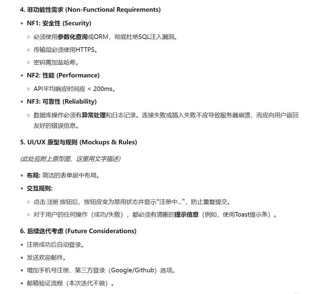 不是在聊天框里打一行字,而是使用飞书、Notion等、markdown编辑器等工具,撰写一份包含背景、目标、功能详述、非功能性需求(如性能、安全)、界面原型/流程图的完整文档。