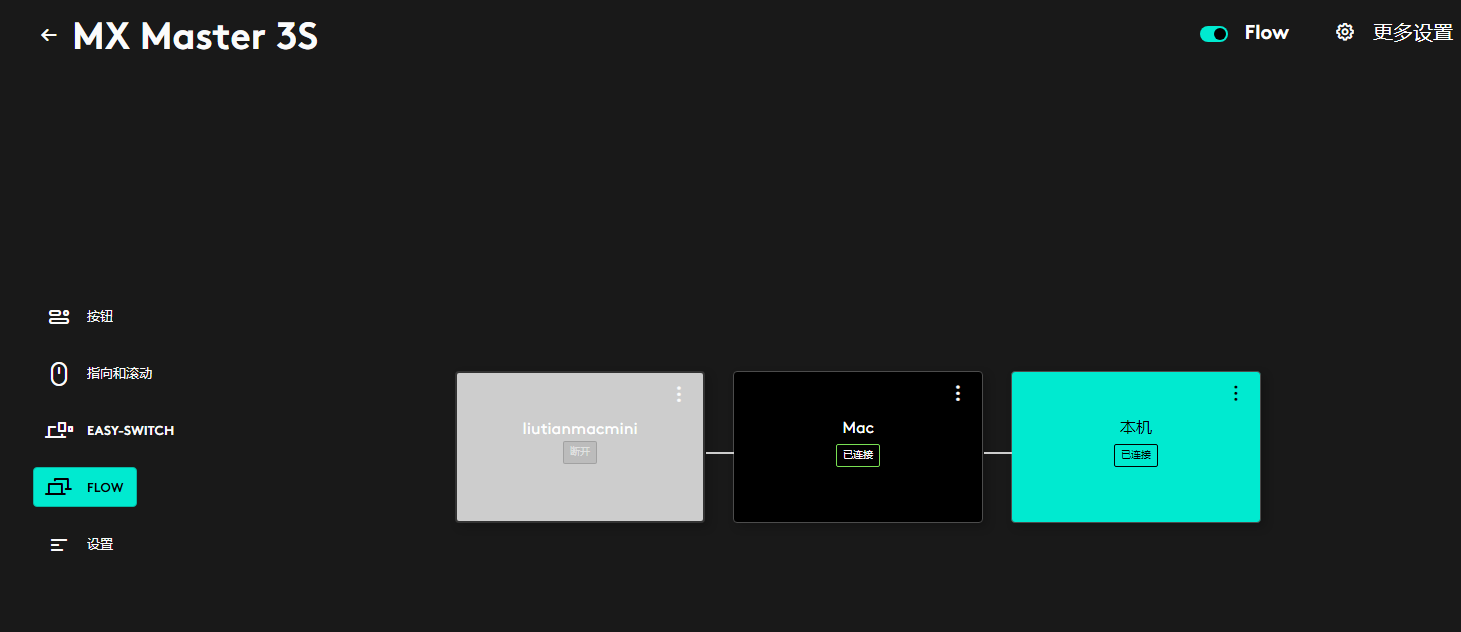 上周四下午布置完会议室,我开始捣鼓 Logi Flow:在 MacBook 上打开 LOGI OPTIONS+,点击左侧「FLOW」时,软件自动搜索到隔壁工位台式机的信号。两台设备都点击「设置 FLOW」后,我故意把鼠标光标移到 MacBook 屏幕右边缘 —— 眼睁睁看着光标像穿过一层水膜似的「滑」到了台式机屏幕上,那一刻鸡皮疙瘩都起来了,这不就是我幻想过的「数字瞬移」吗?