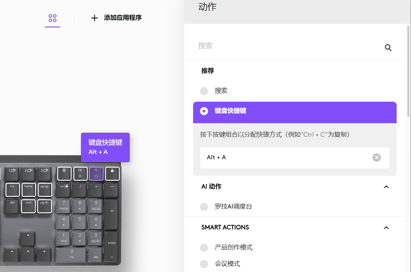 MX Keys S键盘的按键动作快捷设置功能