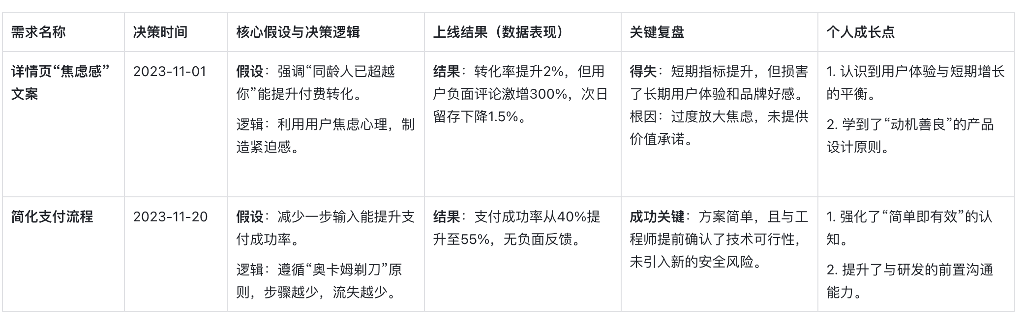 面试核武器:当面试官问“你做过最失败/成功的需求是什么”,你能完整复现决策上下文和深度思考,远超同龄人。